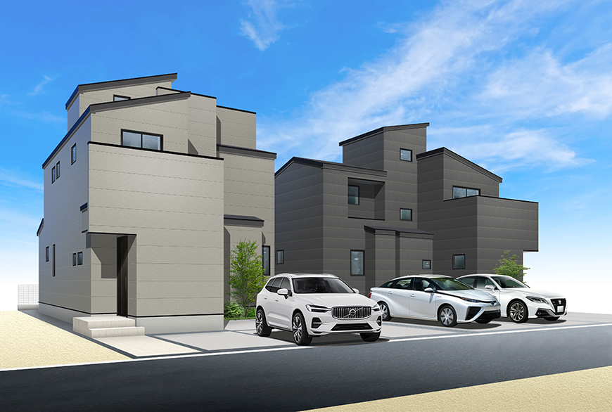 | 建物面積 | 1号地:110.11m² 2号地:112.96m² | 建築確認番号 | 1号地:第J25-20227号(令和7年9月24日)、2号地:第J25-20228号(令和7年9月24日) |